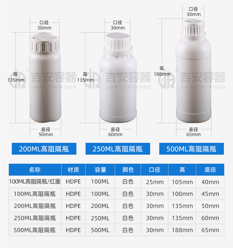 東莞市吉安包裝容器有限公司創(chuàng)立于2000年8月1日,是中國(guó)知名品牌企業(yè)。已通過(guò)ISO 9001質(zhì)量管理體系資質(zhì)認(rèn)證,加入了中國(guó)中空協(xié)會(huì),并獲得《中國(guó)知名品牌》,《國(guó)家標(biāo)準(zhǔn)合格產(chǎn)品》,《全國(guó)重合同守信用AAA級(jí)企業(yè)》,《質(zhì)量.服務(wù).誠(chéng)信AAA企業(yè)》等榮譽(yù)稱(chēng)號(hào)。根據(jù)材質(zhì)的不同,我們的產(chǎn)品分為塑料容器、鐵質(zhì)容器、鋁材容器、玻璃容器、紙質(zhì)容器等五大類(lèi)。按產(chǎn)品的名稱(chēng)分為塑料桶、塑料瓶、包裝桶、涂料桶、機(jī)油桶、油脂桶、化工罐、膠水瓶、鐵桶、鐵罐、鋁瓶、鋁罐、阻隔瓶、高阻隔瓶等,容量從3ML至1000L多種規(guī)格,多種款式。適合包裝的產(chǎn)品包括:化學(xué)試劑、化工原料、化工助劑、飼料添加劑、油墨、油漆、樹(shù)脂農(nóng)藥、日用化學(xué)品、聚氨脂、膠粘劑,廣泛應(yīng)用于化工、建筑、食品、醫(yī)療、生物等各領(lǐng)域。