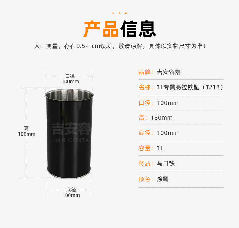 • 產(chǎn)品名稱:1L專黑易拉罐(T213)